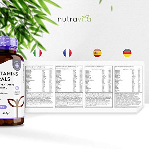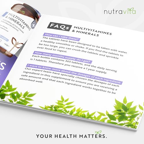 - ✔ WHY NUTRAVITA’S MULTIVITAMIN & MINERALS SUPPLEMENT? – Our Multivitamin Tablets for Men / Women come with 26 Active Vitamins & Minerals that have been carefully selected to support you on a daily basis. Furthermore, our supplement comes with a fantastic 12 month supply, with each of the 365 Vegan Tablets containing the benefits of the 26 essential active Vitamins & Minerals.