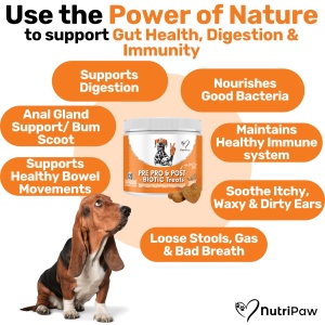 - UK’s Most Loved Pre, Pro & Postbiotic Chew (4,000+ 5* Reviews) – A tasty chew formulated to deliver gut health & digestive support, bum scooting/ anal gland support & soothe itchy, dirty, smelly ears
