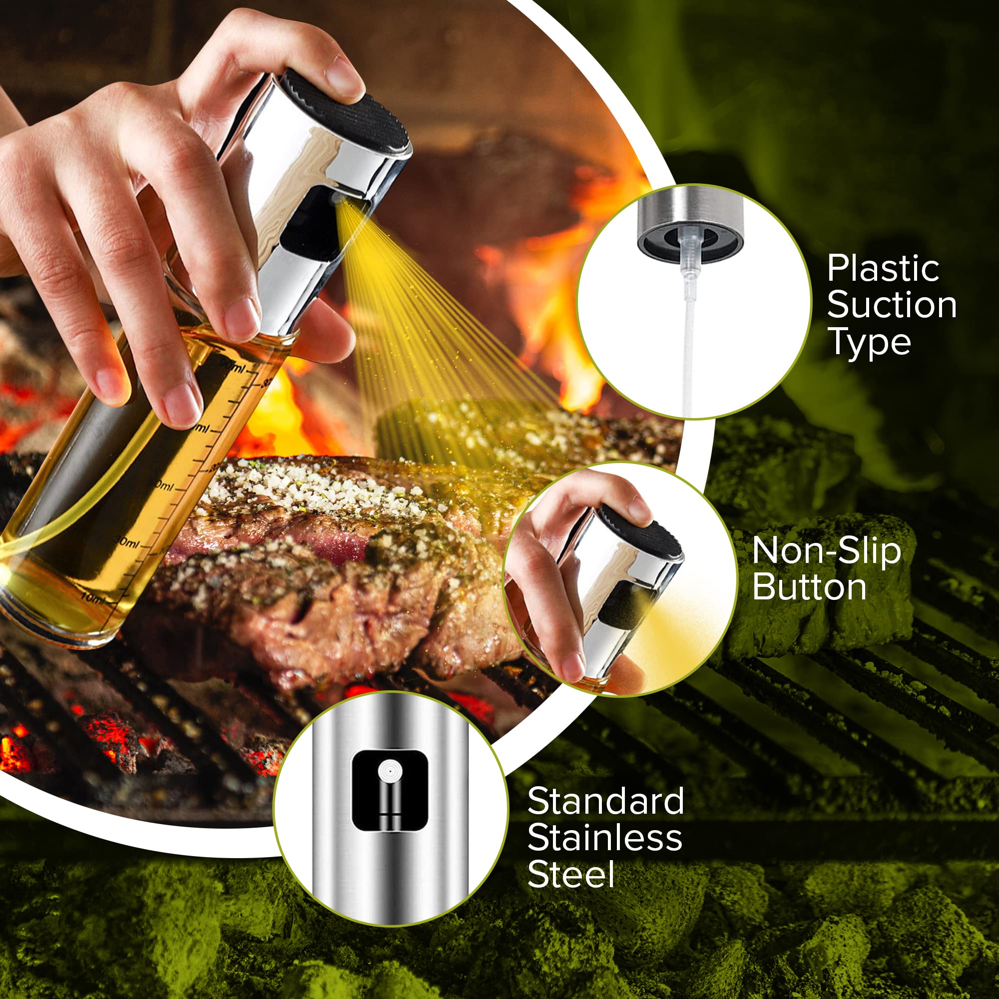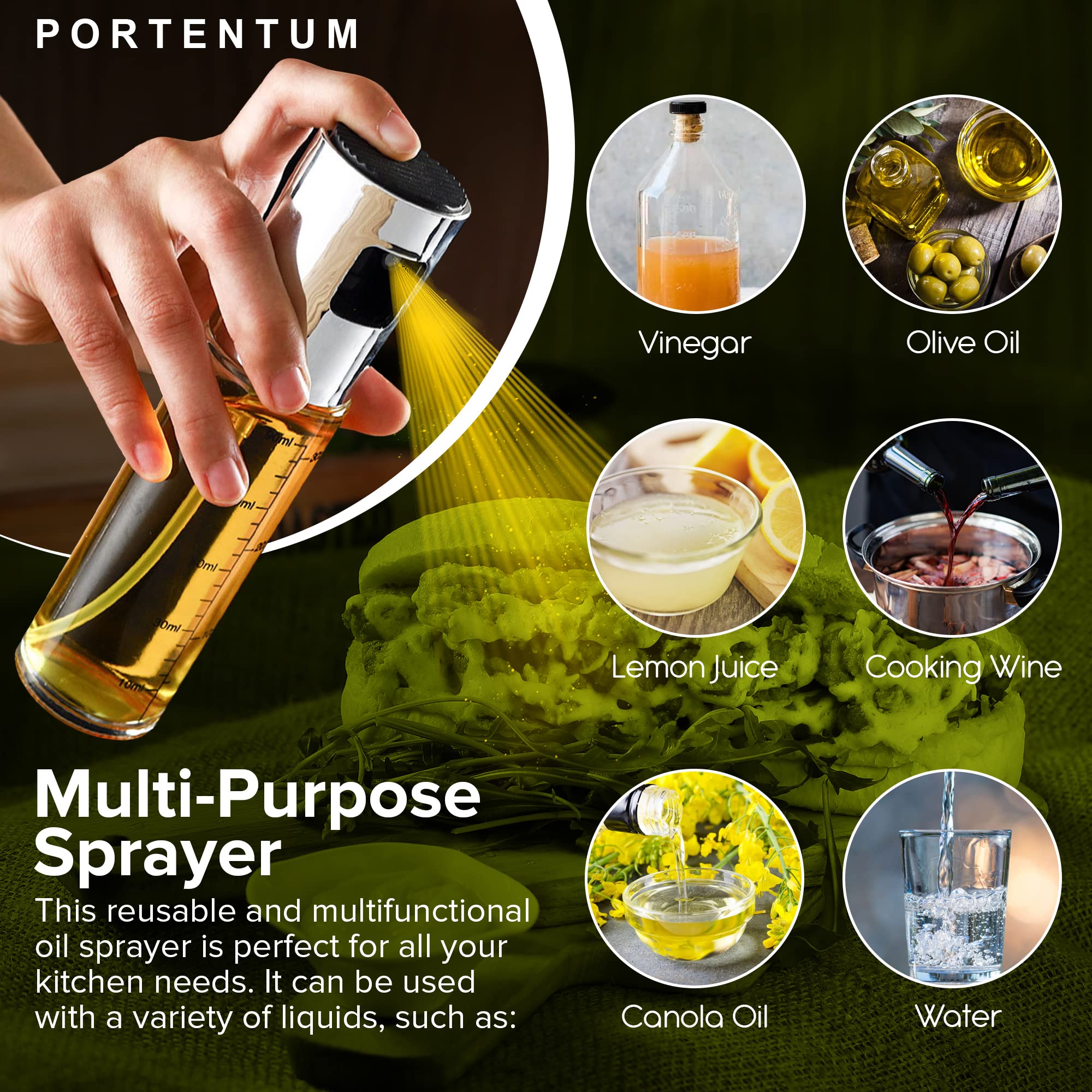 - Multifunctional Oil Spray Bottle – Great for spraying olive oil, vinegar, lemon juice, wine and more. Perfect for kitchen, BBQ, salads and air fryer