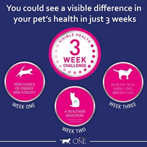 - You could see a visible difference in your cat’s health in just 3 weeks with the Purina ONE 3 week challenge; supporting a healthier digestion, higher energy and vitality levels, healthy skin, brighter eyes and a shinier coat