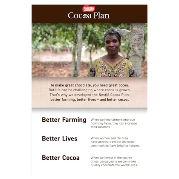 - Quality, 100% certified sustainable cocoa beans selected through the Nestlé Cocoa Plan